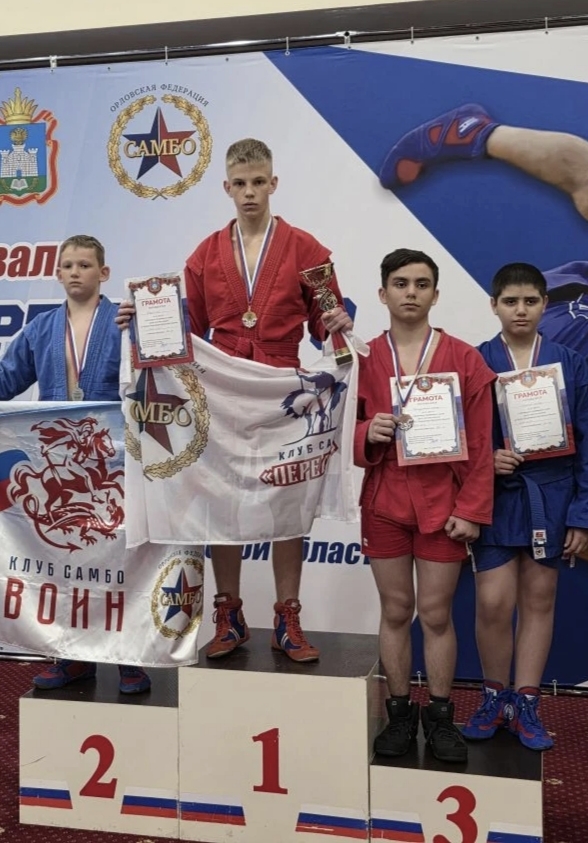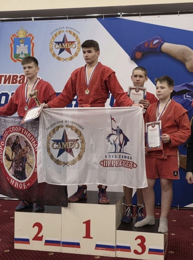 На парад открытия команда спортшколы выходила с флагом и эмблемой клуба самбо "Пересвет". За призовые места ребят наградили медалями и грамотами, а победителей ещё и кубками Губернатора Орловской области.