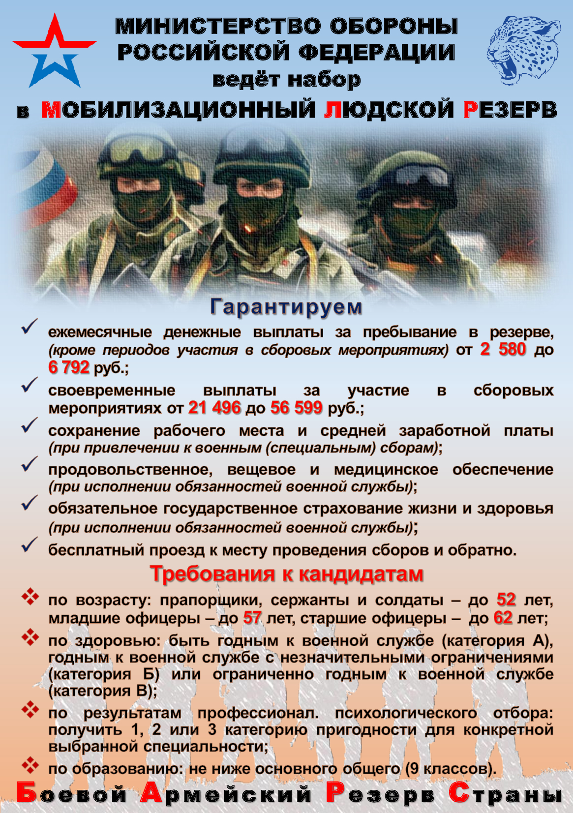 Министерство обороны Российской Федерации ведет набор в мобилизационный людской резерв